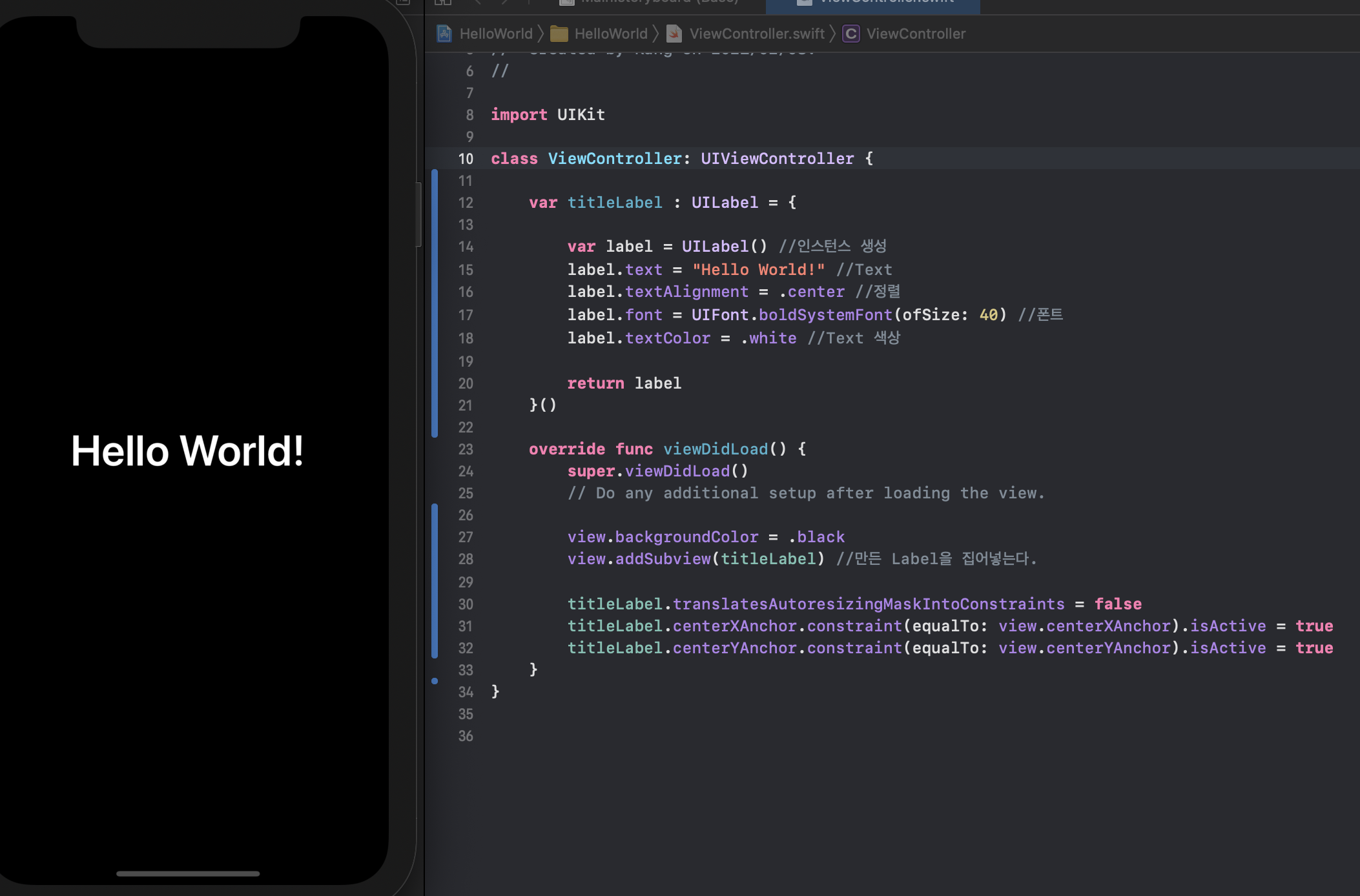 ์๋์ฌ์ง์ 12๋ฒ์งธ ์ค๊ณผ ๊ฐ์ ๋ถ๋ถ์ var titleLabel : UILabel ๋ถ๋ถ์ let titleLabel : UILabel๋ก ์์ฑํ์๋ค.