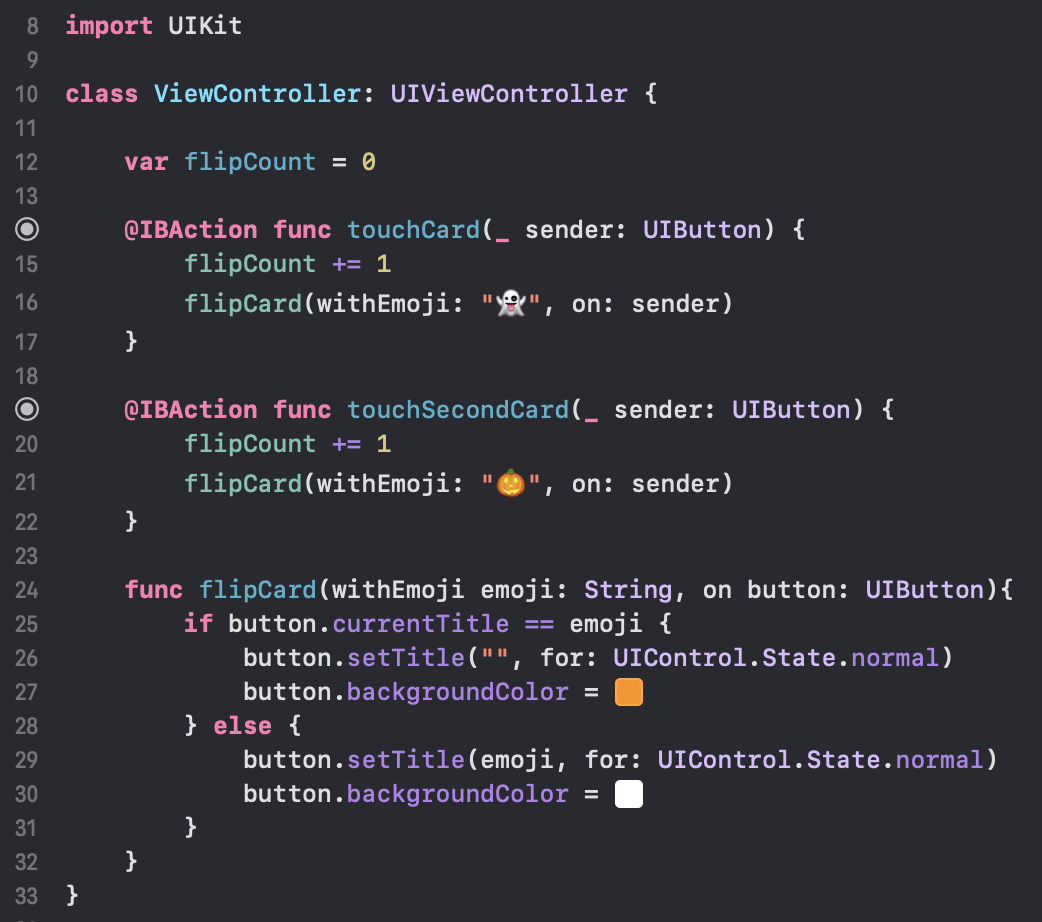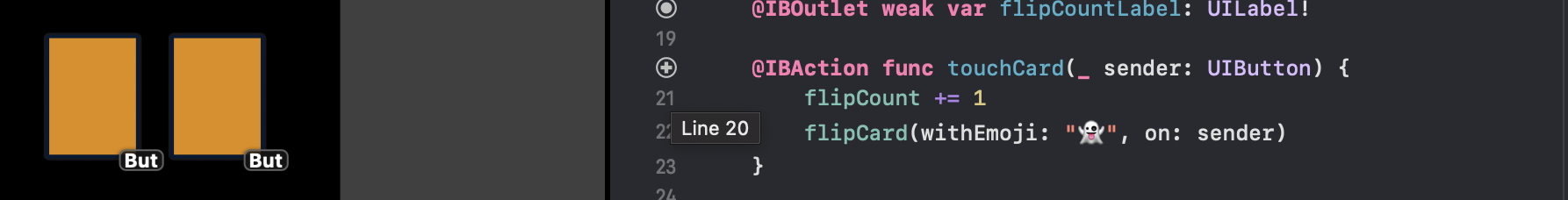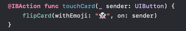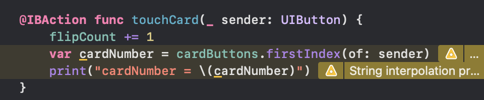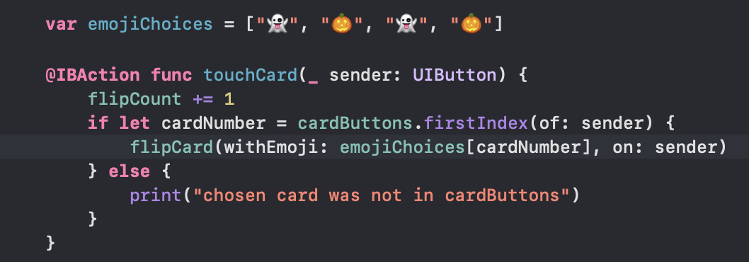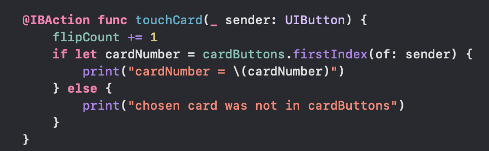 cardButtons.firstIndex(of: sender) 뒤에 느낌표를 붙여준 뒤 다시 실행해본다.