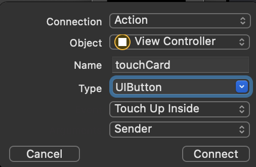 touchSecondCard의 연결을 끊어준 뒤, touchCard에 ctrl + 드래그 해 준다.