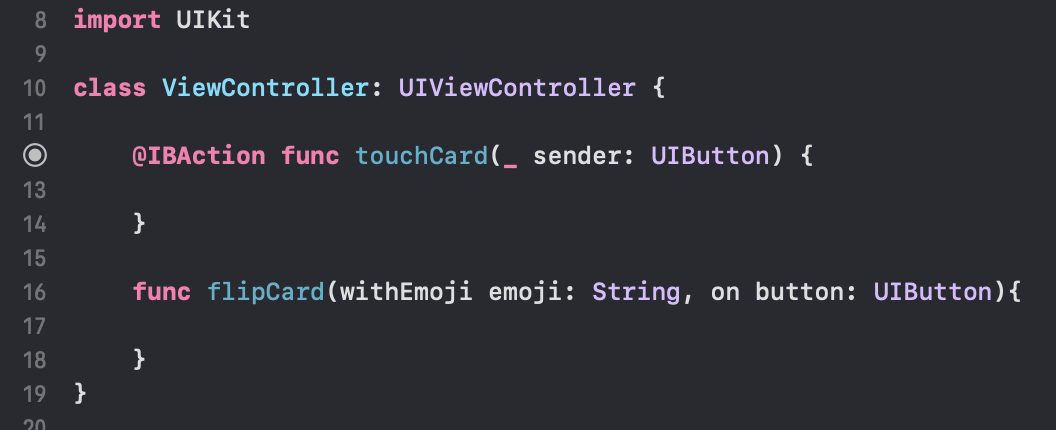메소드의 이름도 정할 수 있는데 touchCard라고 해준다.