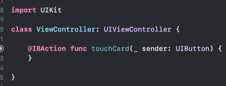 @IBAction이 이렇게 표시해준다.