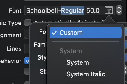 Font에서 Custom을 누르고 원하는 폰트를 찾아준다.