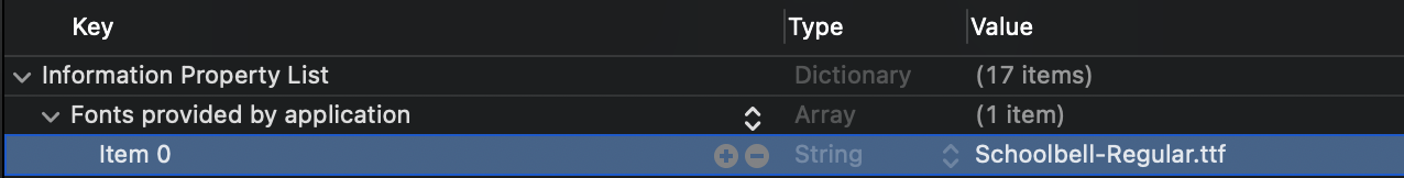 Fonts provided by application을 만들고 아이템을 지정해준다.