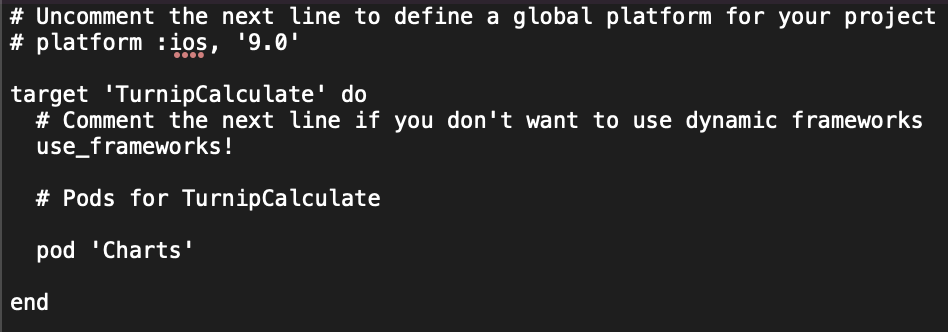 - 라이브러리를 사용할 프로젝트로 가서 pod file을 생성해준다.