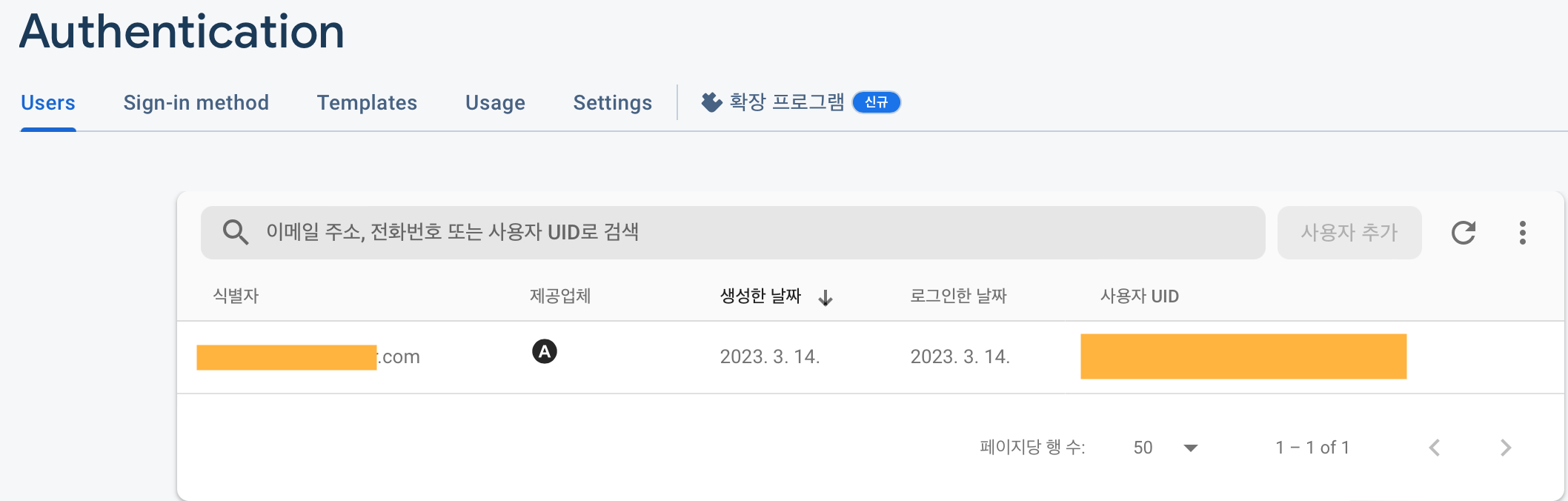 Firebase로 가면 로그인이 된걸 확인할 수 있다.