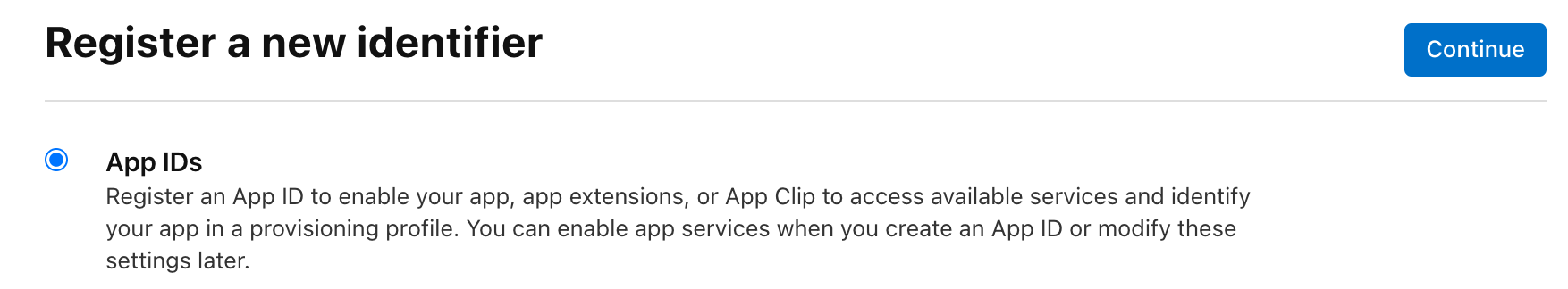 App IDs를 클릭하고 Continue 해준다.