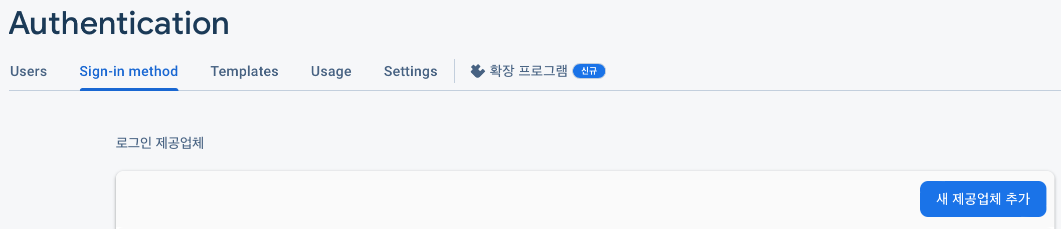 Firebase 홈페이지에서 새 프로젝트를 생성하고 Authentication로 간 뒤