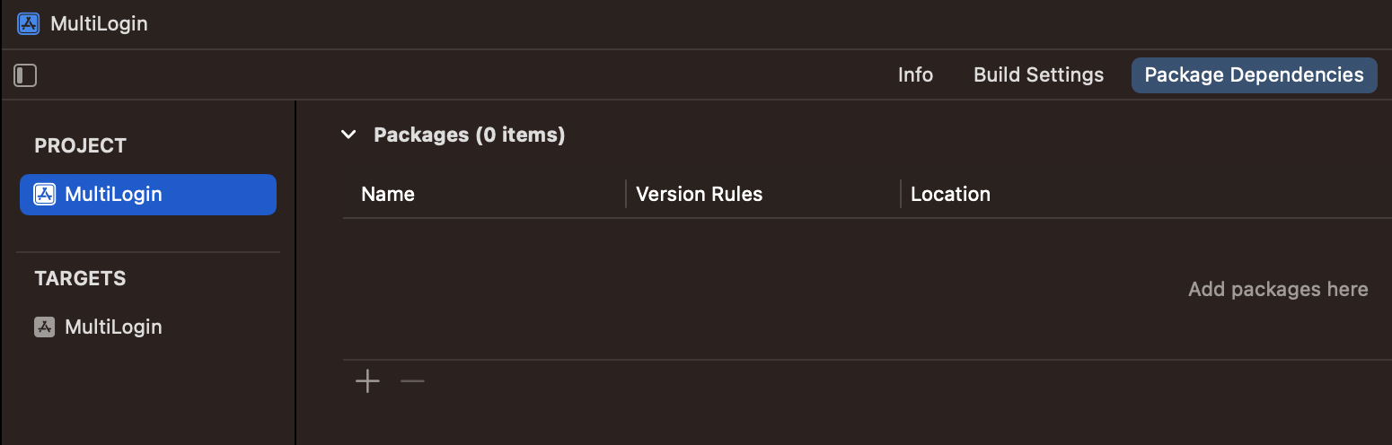 PROJECT -> Package Dependencies -> + 버튼 클릭